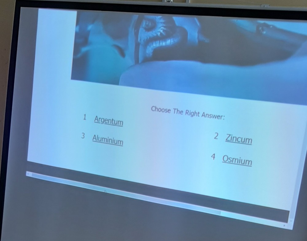 The Shaman/Шаман (Екатерина Маслик) научил ребят забавным приемам запоминания названий химических элементов на английском языке - с помощью ассоциативных рисунков. Затем ее ученики должны были продемонстрировать это умение, а их команды угадать, какой элемент они «зашифровали».