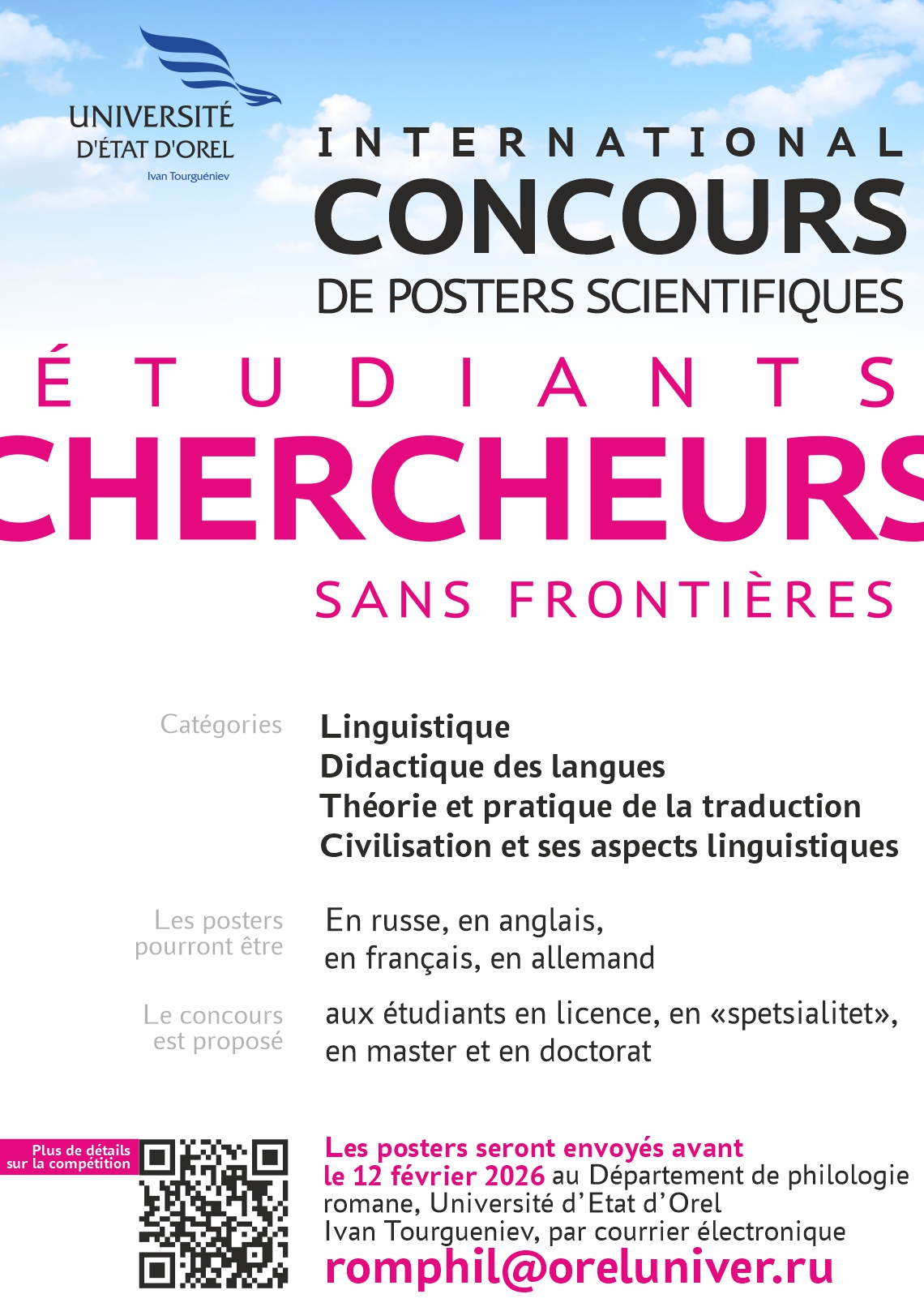 Работы подаются до 12 февраля 2026 года в электронном варианте на адрес конкурса romphil@oreluniver.ru