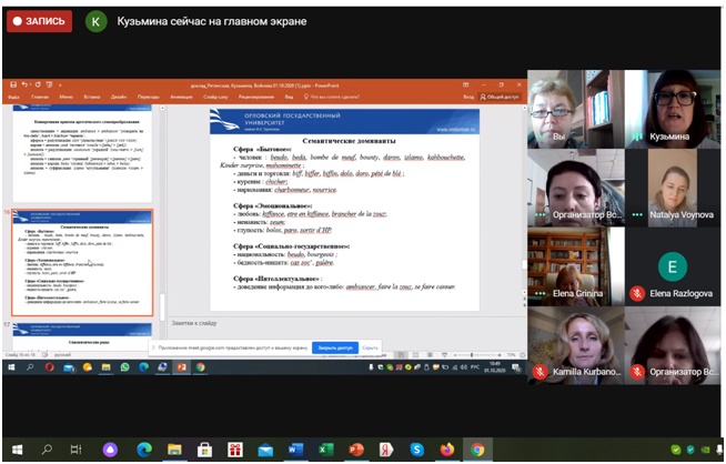 Представители Международной научно-исследовательской лаборатории «Проблемы социального и территориального разноречия» приняли участие в XII Международной конференции «Риторика в свете современной лингвистики», организованной Смоленским государственным университетом в онлайн-формате. Т.И. Ретинская, О.А. Кузьмина, Н.В. Войнова выступили с докладом «Новые тенденции в современном французском арго пригородов (на материале четвертого издания словаря Ж.-П. Гудайе Comment tu tchatches !).