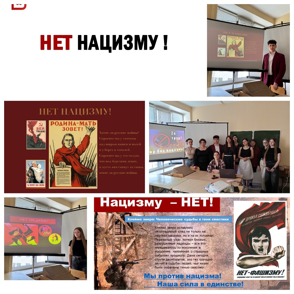 22 апреля 2025 года подведены итоги конкурса электронных постеров среди студентов 1 курса института филологии на тему «Нет нацизму!», который был организован преподавателями кафедры иностранных языков О. А. Ефановой и О. Ю. Ивановой с целью привлечения внимания студентов к актуальной проблеме недопустимости нацистских настроений среди молодежи и необходимости борьбы с ними. В ходе работы над постерами студенты продемонстрировали не только знание исторических реалий, но и свои творческие способности и креативность.