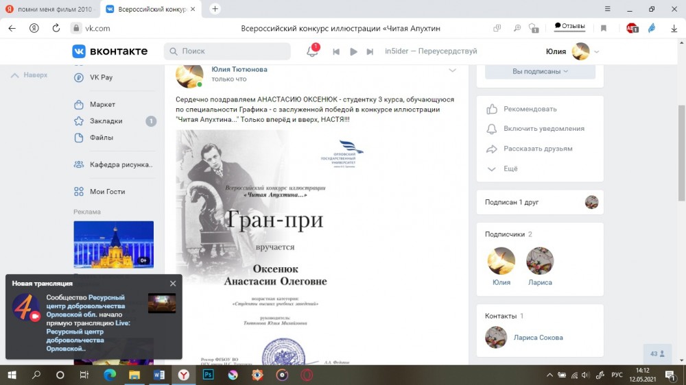 Таким образом, 29 апреля 2021 года состоялось торжественное награждение победителей и участников на платформе ZOOM, результаты конкурса размещены в социальных сетях: