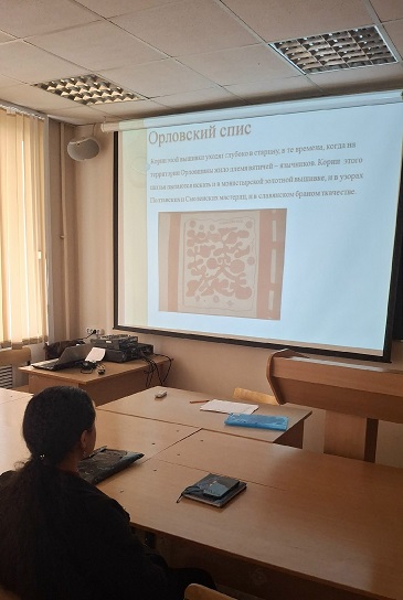 Центральным моментом встречи стало знакомство с «Орловским списом» — самобытным видом традиционной вышивки, прославившим Орловскую область. Участники не просто услышали о старинном промысле, но и увидели его воочию: Марина Викторовна принесла на встречу настоящую семейную реликвию — рушник, созданный в 1891 году. Вниманию гостей были представлены изящные узоры, рассказана история возникновения «Орловского списа» и раскрыты секреты его уникальной техники.