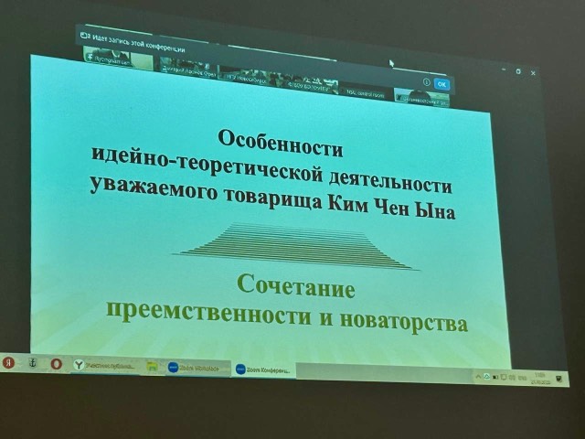 Продолжением цикла лекций стало выступление корейских коллег 21 октября этого года по такой теме как «Углубление и развитие кимерсенизма-кимчениризма» в деятельности Трудовой партии Кореи (ТПК) под руководством и непосредственном участии руководителя страны товарища Ким Чен Ына