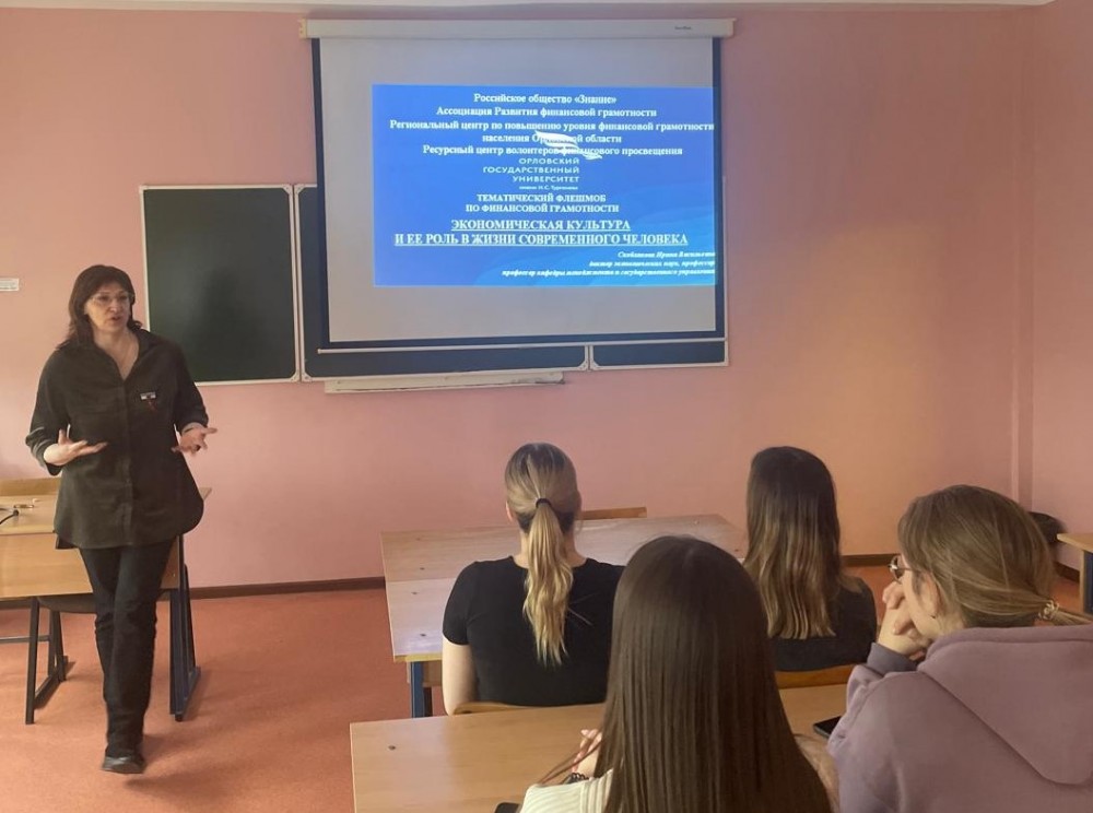8 апреля 2025 года в рамках Недели финансовой грамотности «Из Орла - для всей России» для студентов Института экономики и управления, Института естественных наук и биотехнологий, факультета подготовки иностранных обучающихся была проведена лекция с элементами мастер класса «Экономическая культура в жизни современного человека». Организаторы: Скоблякова Ирина Васильевна, профессор кафедры менеджмента и государственного управления, Рябинина Наталья Ивановна, доцент кафедры менеджмента и государственного управления, Ефремова Светлана Михайловна, доцент кафедры русского языка как иностранного и межкультурной коммуникации.