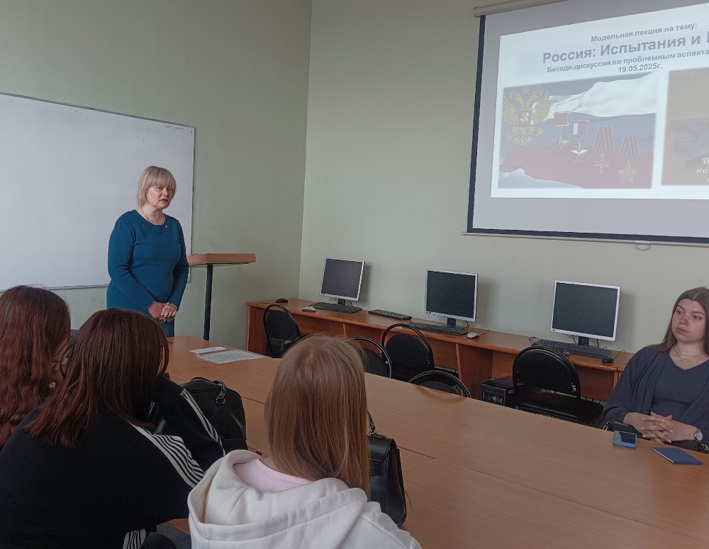 19 мая 2025 г состоялось важное воспитательное мероприятие для студентов, посвященное теме "Россия: испытания и герои". Целью мероприятия стало укрепление патриотизма, формирование чувства гордости за историю своей страны и воспитание уважения к подвигам героев.