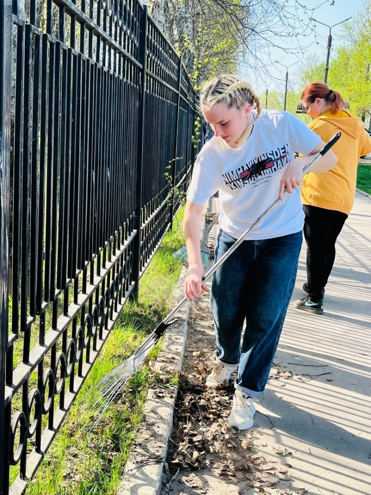 Погода в этот день нам улыбнулась. С энтузиазмом и отличным настроением студенты принялись за уборку своей территории. Они очищали газоны от прошлогодней листвы, собирали мусор, подметали дорожки, обмениваясь шутками и улыбками.