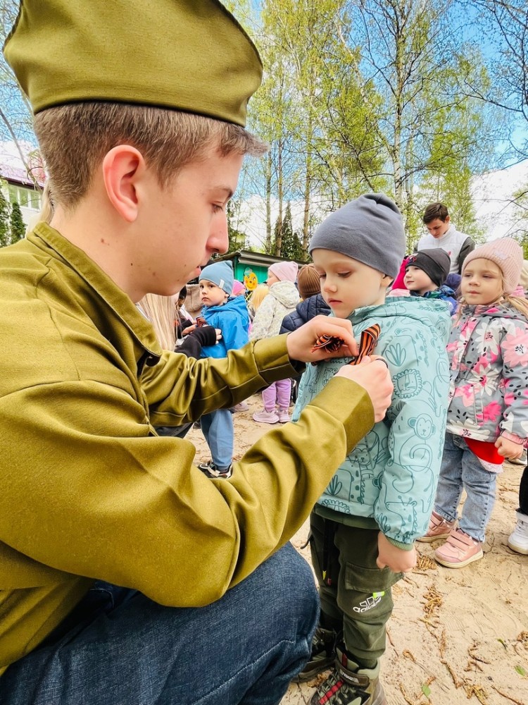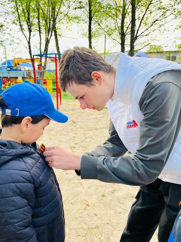 Прикрепляя ребятам символ Победы, волонтеры напоминали о важности памяти и уважения к героическому прошлому.