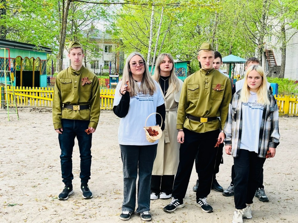30 апреля активисты волонтерского отряда "Мы" Карачевского филиала ОГУ имени И.С.Тургенева раздали георгиевские ленточки воспитанникам и воспитателям МБДОУ N°12 "Золотая рыбка" г. Карачев.