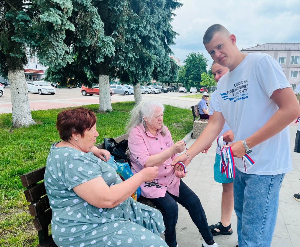 В рамках акции активисты Карачевского филиала Орловского государственного университета имени И.С. Тургенева раздали более 100 ленточек в цвете российского флага, а также рассказали об истории праздника, значении цветов на флаге. Жители нашего города позитивно отнеслись к акции и с благодарностью приняли сувениры в виде ленточек.