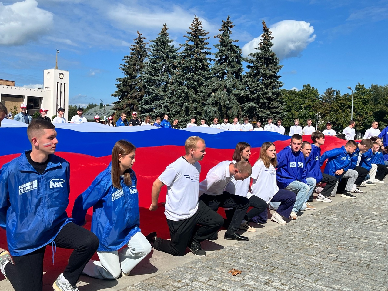Активисты «Молодой Гвардии Единой России» совместно со студентами-волонтерами Карачевского филиала Орловского государственного университета имени И.С. Тургенева и Молодежными Советами АО «Карачевский завод «Электродеталь» и АО «МЕТАКЛЭЙ» провели патриотическую акцию на центральной площади города Карачева. Участники мероприятия растянули огромный флаг России, символизируя единство и гордость за свою страну.