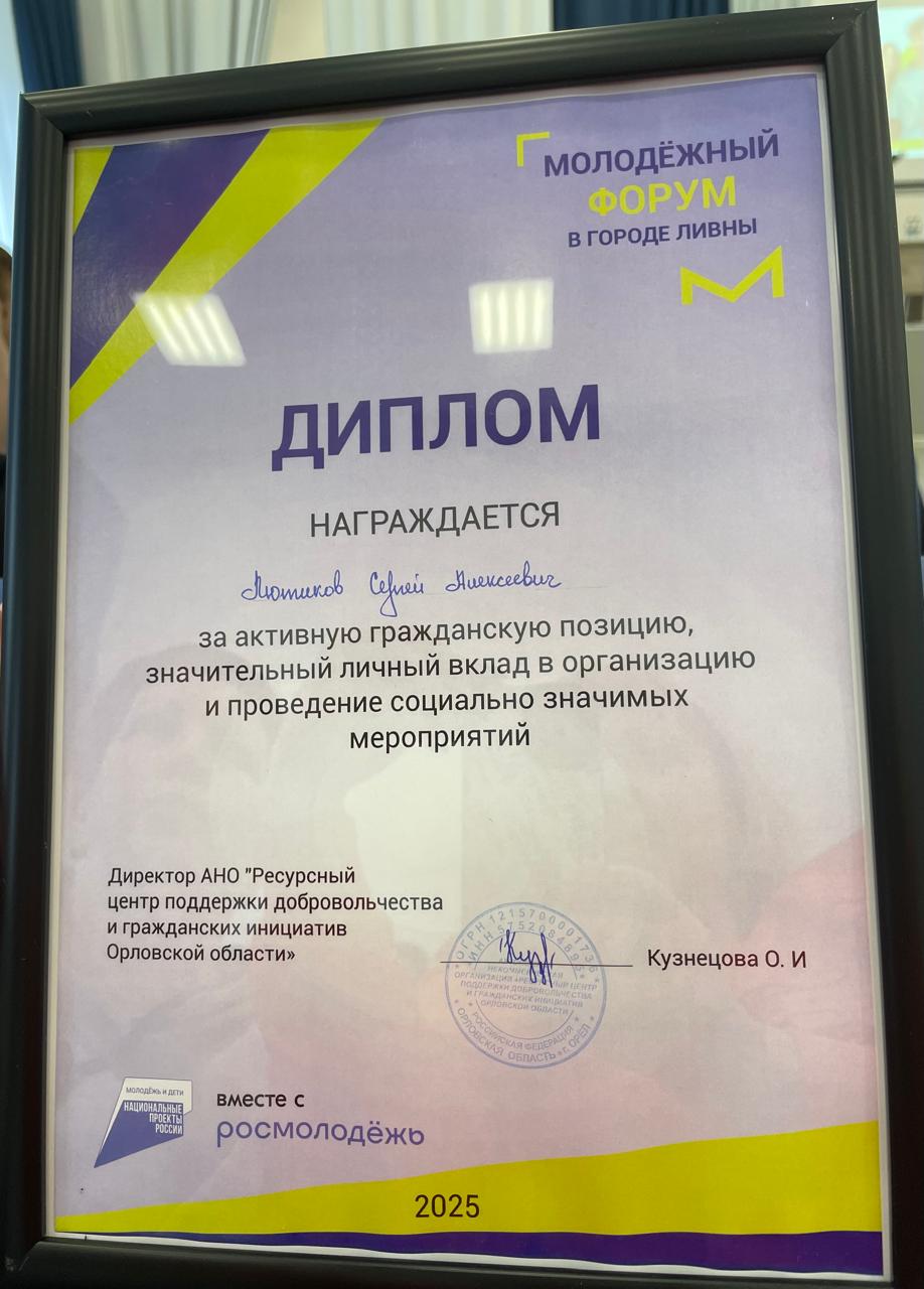 17 октября 2025 года обучающиеся 1 курсов СПО, активисты Движения Первых Ливенского филиала ОГУ им. И.С. Тургенева приняли участие в муниципальном молодёжном форуме. В рамках форума выступали спикеры, которые рассказали присутствующим о том, как свои идеи превратить в конкретные планы и проекты. Лютиков Сергей (студент группы ТС31) на форуме был отмечен диплом и благодарностью за активную гражданскую позицию, значительный вклад в организацию и проведение социально значимых мероприятий. Активисты приняли участие в работе творческих мастерских, посетили интерактивную выставку вооружения времен ВОВ и современного оружия. Кроме этого, каждый смог попробовать свои силы в управлении дронами на симуляторах.