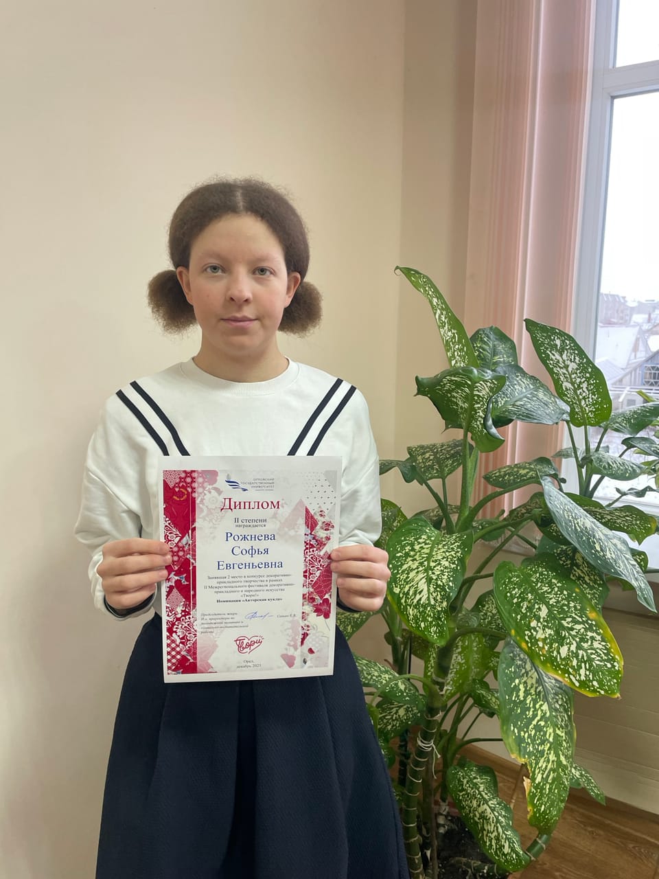 В рамках церемонии прошло награждение победителей в многочисленных номинациях. Рожнева Софья награждена дипломом 2 степени в номинации «Авторская кукла».