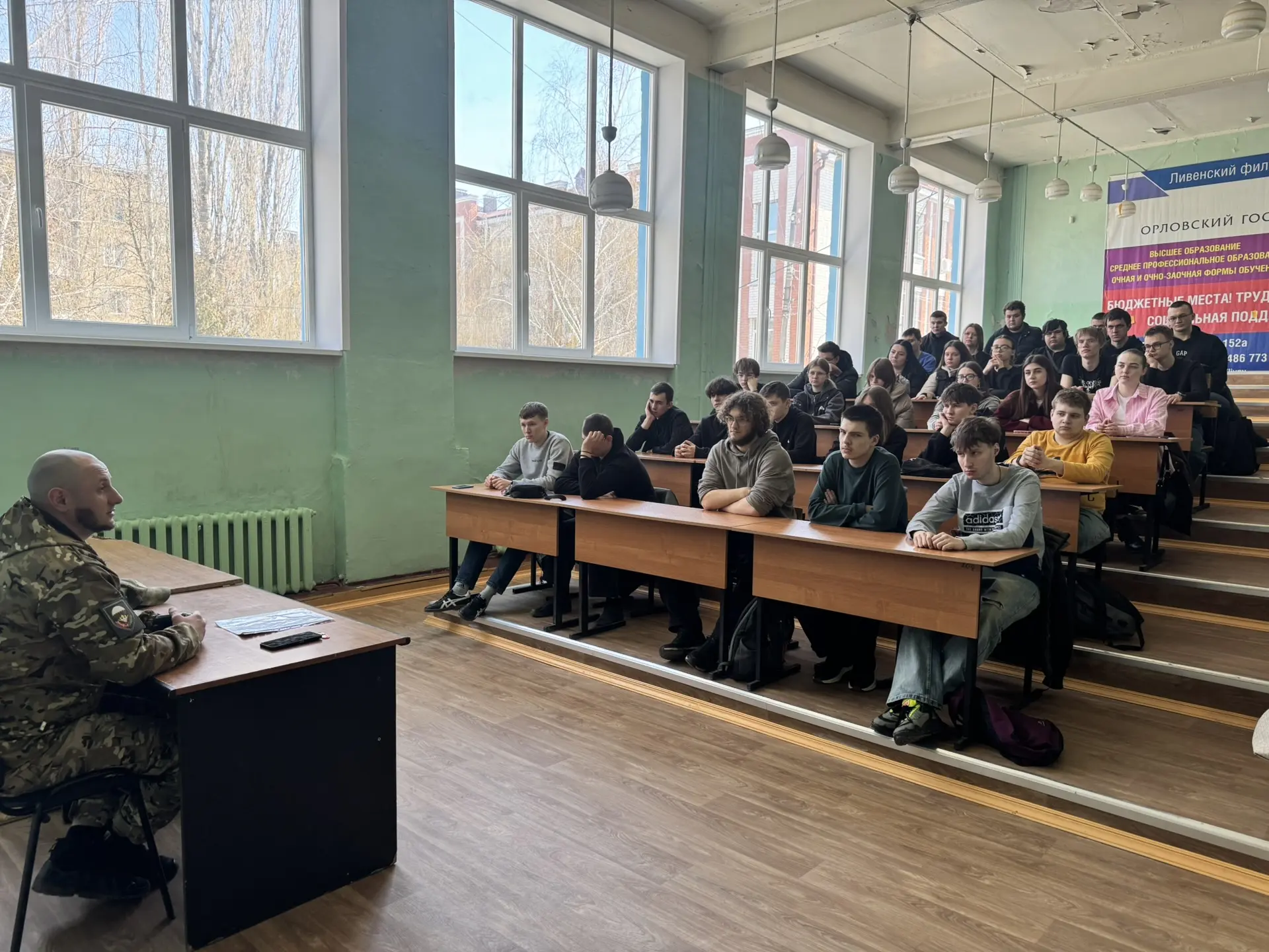25 марта 2026г. в стенах Ливенского филиала ОГУ им. И.С. Тургенева прошел открытый диалог, посвященный возможностям современной военной службы. Спикером мероприятия стал человек, чьи заслуги перед Отечеством отмечены высокими государственными наградами: орденом Мужества и Георгиевским крестом IV степени.