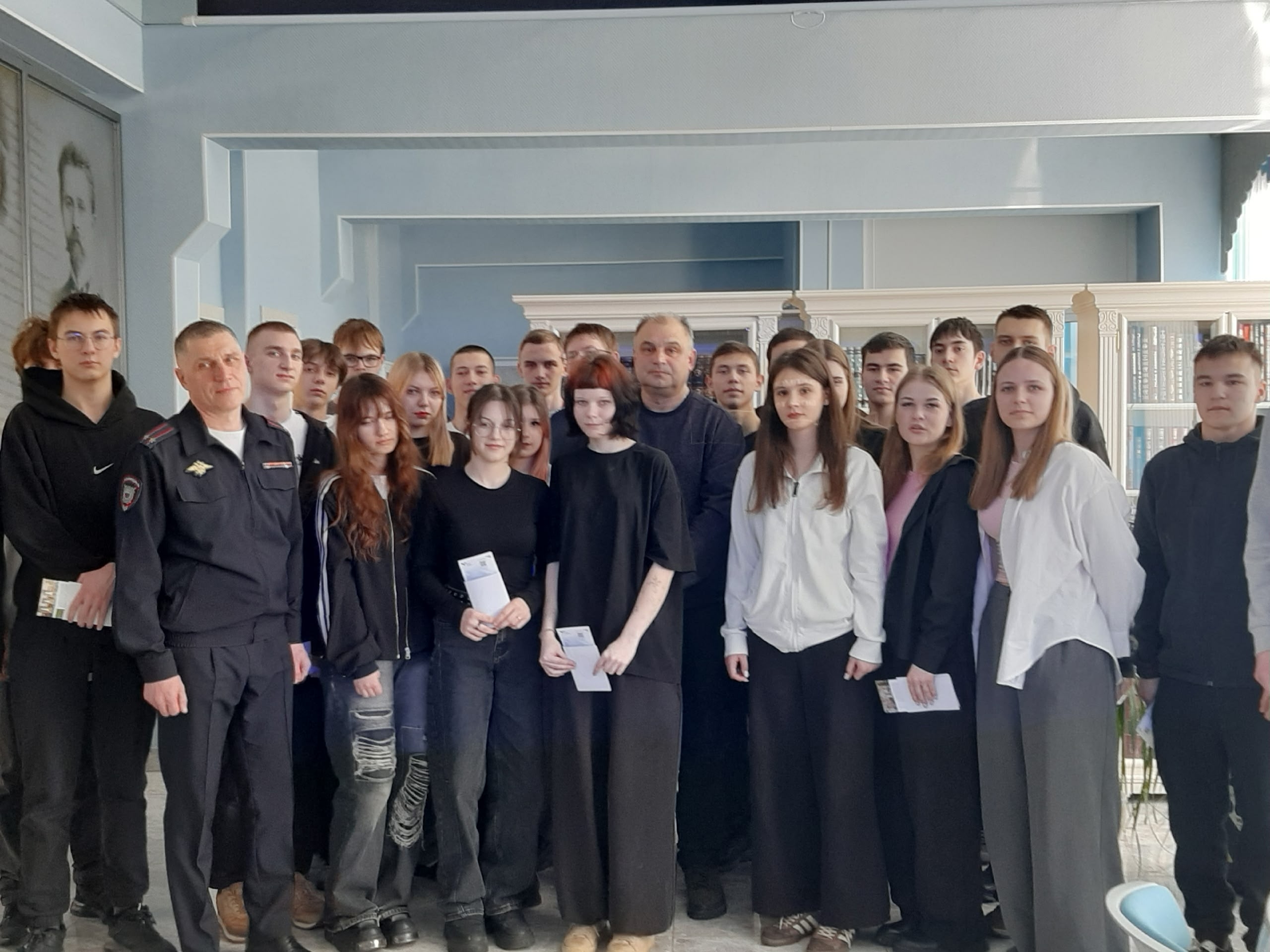 11 марта в центральной городской библиотеке имени И. А. Новикова состоялся актуальный диалог на тему «Наша истинная национальность – человек». Обучающиеся первого курса Мценского филиала ОГУ имени И.С. Тургенева встретились с руководителем военно-исторического клуба «Орловская пехота» Сретенским Сергеем Юрьевичем и заместителем начальника МО МВД России «Мценский» Андросовым Андреем Николаевичем.