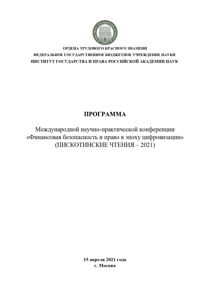 15.04.2021 идет Международная научно-практическая конференция «Финансовая безопасность и право в эпоху цифровизации» (ПИСКОТИНСКИЕ ЧТЕНИЯ 2021).
