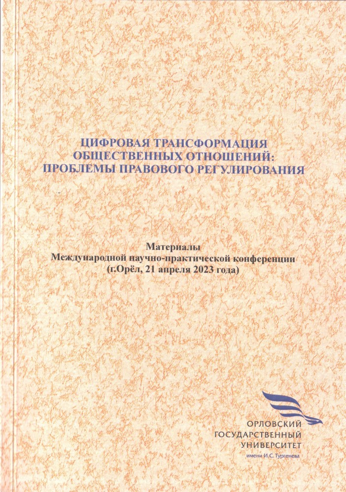 Опубликованы материалы международной научно-практической конференции «Цифровая трансформация общественных отношений: проблемы правового регулирования» (г. Орел, 21 апреля 2023 г.) / Министерство науки и высшего образования Российской Федерации, ОГУ имени И.С. Тургенева, Министерство образования Республики Беларусь, БГУ.