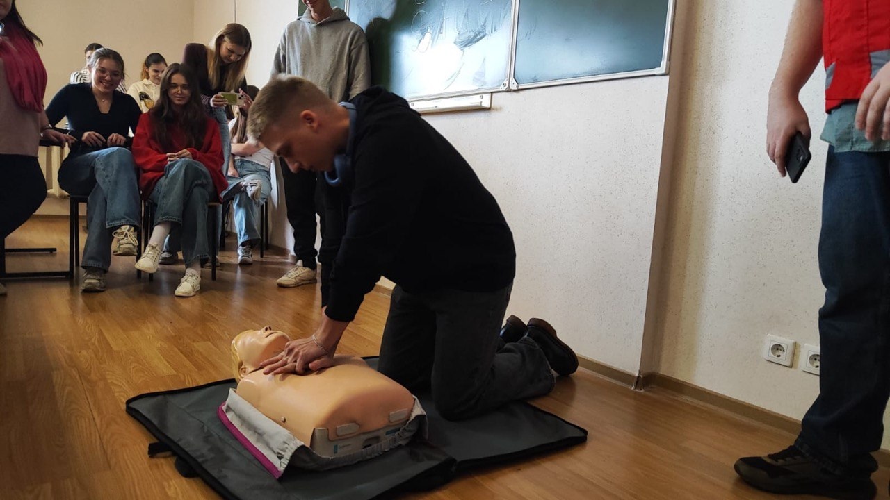 Участники мастер-класса не только узнали о теоретических аспектах, но и на практике отработали такой навык, как сердечно-лёгочная реанимация, а помогал им в этом интерактивный тренажер «ассистентка Анна», которую студенты должны были спасти.