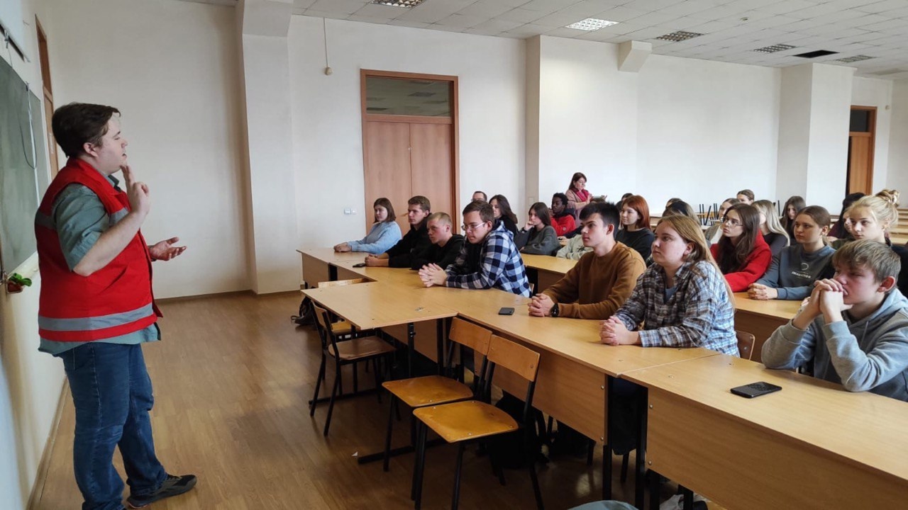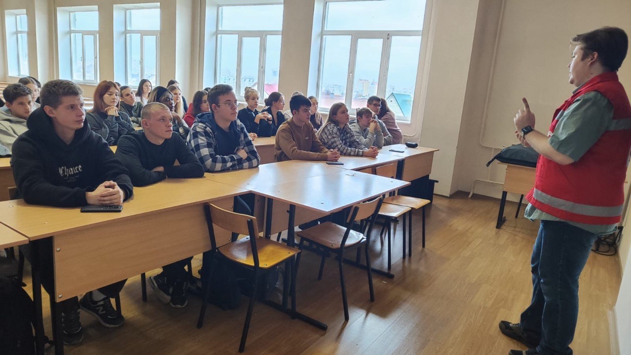 Симаков Александр, инструктор Орловского регионального отделения общероссийской общественной организации «Российский Красный Крест», подробно, доступно и интересно изложил важную информацию по алгоритму действий при необходимости оказания первой доврачебной помощи.