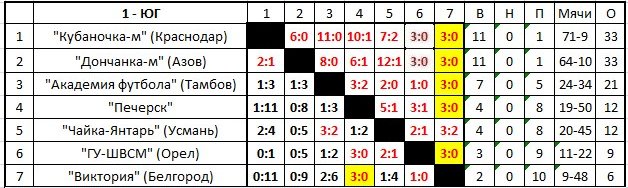 - 7 октября: Академия футбола (Тамбов) - Госуниверситет-ШВСМ 1:0