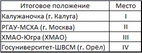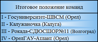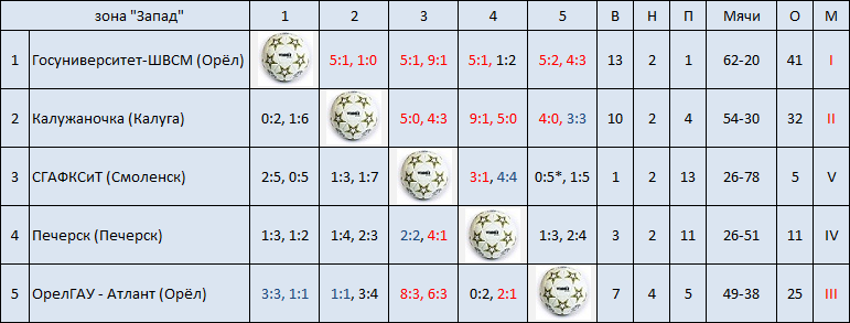 В дебютном для себя сезоне орловский "Госуниверситет-ШВСМ" занял последнее пятое место, имея в активе одну победу и три ничьи.