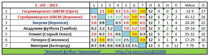 Чемпионат России по футболу среди женских команд 2013 г. Первый дивизион. Зона "Юг".