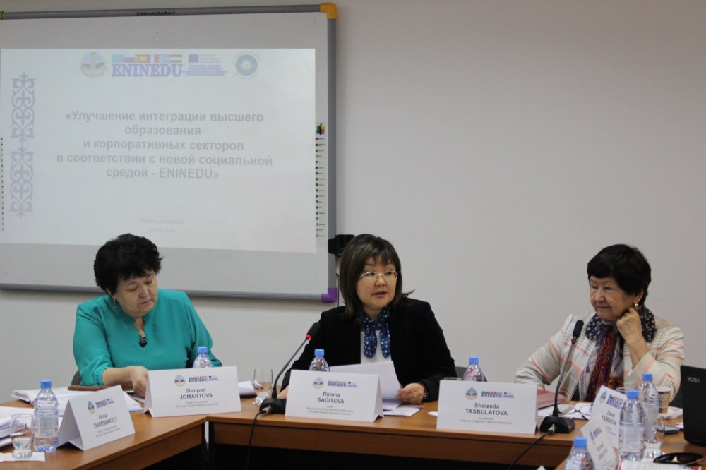 В Казахском национальном университете имени аль-Фараби прошло Координационное совещание по Европейскому проекту Эразмус+ «Улучшение интеграции высшего образования и корпоративных секторов в соответствии с новой социальной средой – ENINEDU 574060-Epp-1-2016-Kz-Eppka2-Cbhe-Sp». Данный проект был одобрен в 2016 году Европейской комиссией и впервые его координатором был назначен КазНУ имени аль-Фараби.