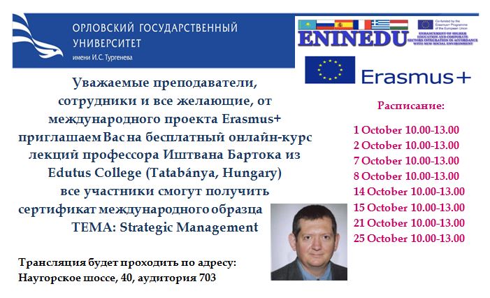 В октябре 2019 г. в рамках проекта ENINEDU проходят онлайн лекции профессора Иштвана Бартока