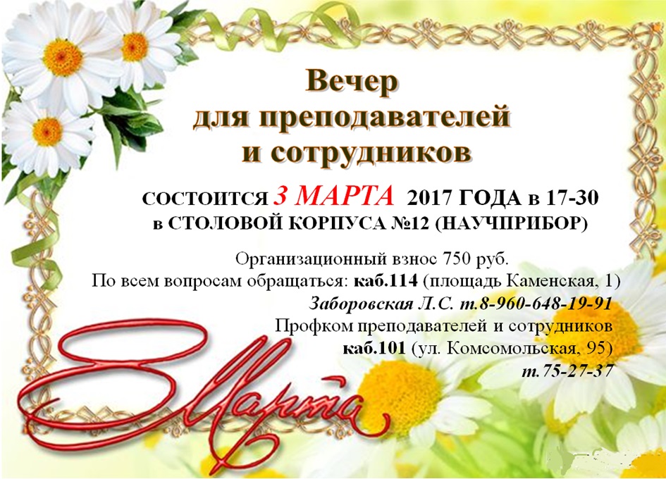 По всем вопросам обращаться в ком. 105 (корпус №11), Заборовская Людмила Сергеевна, тел. 41-58-90