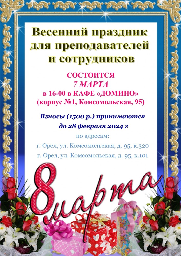 Оргкомитет: Профсоюз преподавателей и сотрудников ОГУ им. И.С.Тургенева