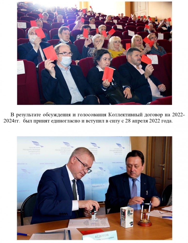- О разработке проекта Коллективного договора между ФГБОУ ВО «Орловский государственный университет имени И.С. Тургенева» и работниками университета на 2016-2019 гг. Тамбовский О.М., Корнеев Ю.С.