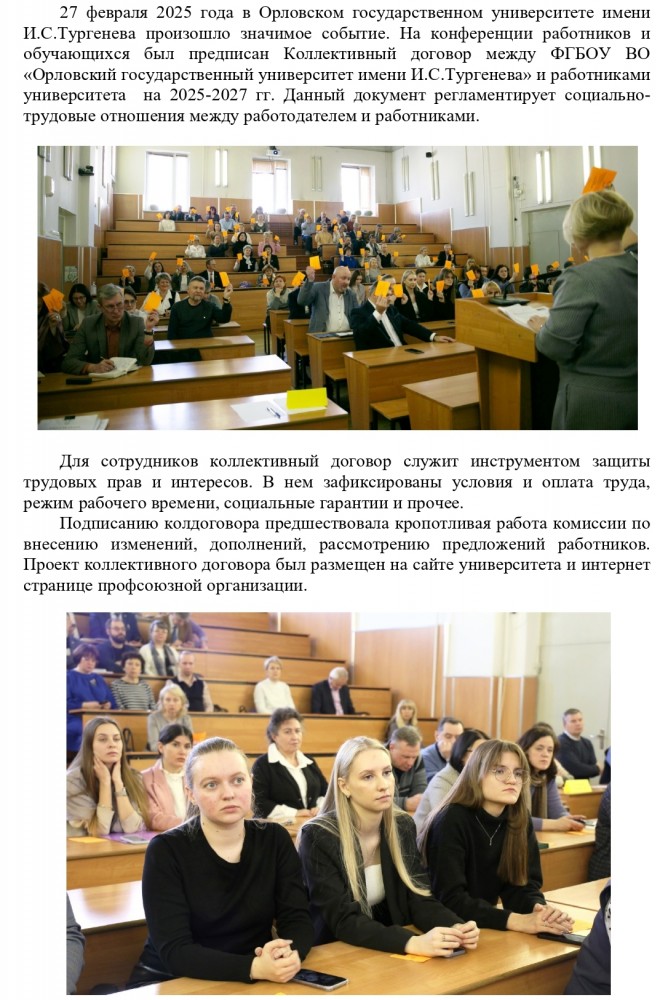 Коллективный договор между ФГБОУ ВО "Орловский государственный университет имени И.С. Тургенева" и работниками университета на 2025 - 2027гг принят конференцией работников и обучающихся ОГУ имени И.С. Тургенева 27 февраля 2025 г.