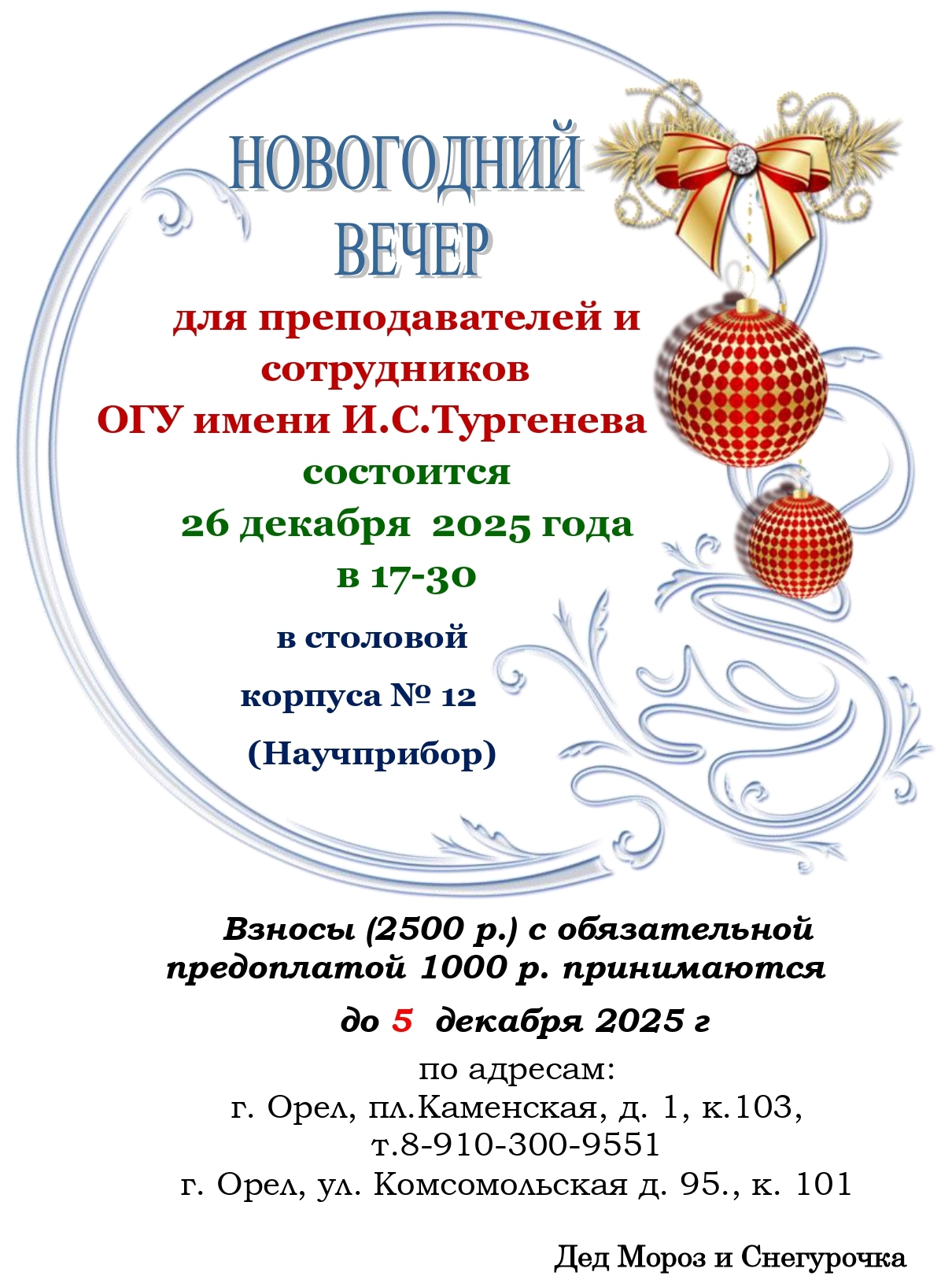 НОВОГОДНИЙ ВЕЧЕР ДЛЯ ПРЕПОДАВАТЕЛЕЙ И СОТРУДНИКОВ