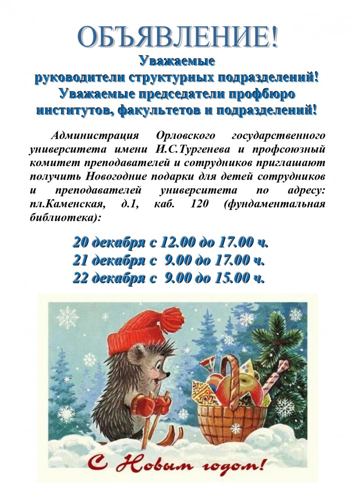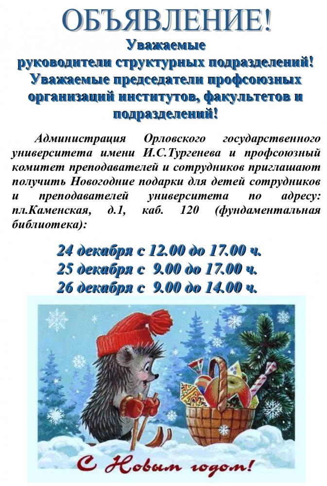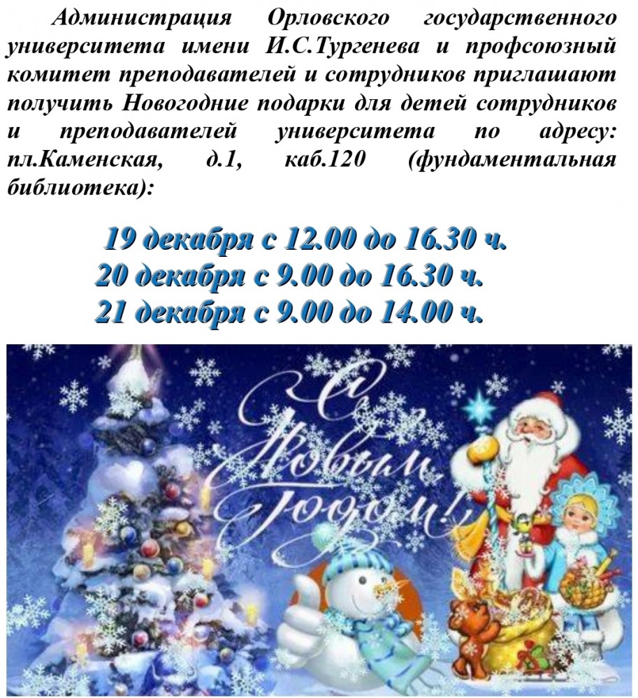 Вход свободный для детей преподавателей, сотрудников и студентов ОГУ имени И.С.Тургенева