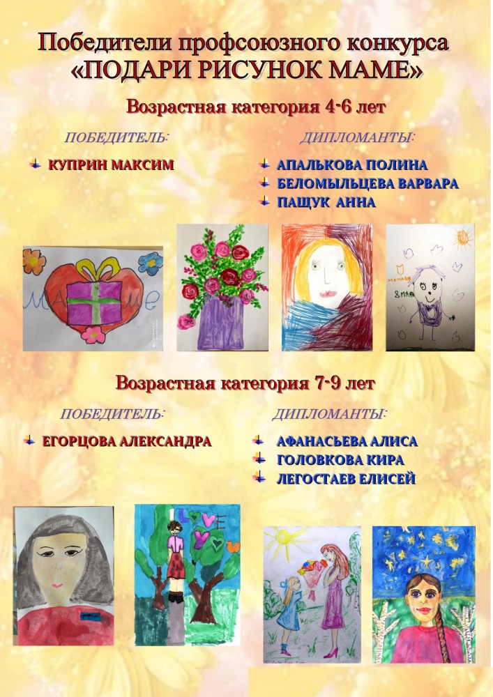 В сопроводительном письме необходимо указать: ФИО автора (ребенка) конкурсной работы (полностью); возраст ребенка, ФИО, должность родителя, члена Профсоюза; контактный телефон родителя автора работы.