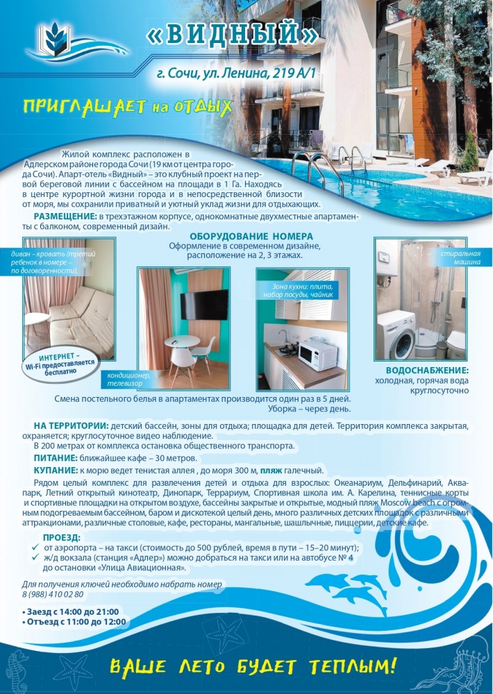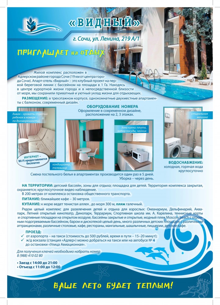 4. Путевки в апарт-отель «Видный» (г. Сочи, ул. Ленина, д.219 А/1).
