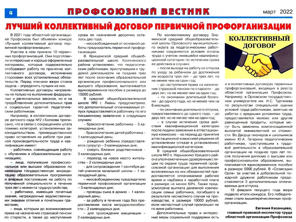 Об участии в конкурсе Коллективных договоров. (Резникова Е.В., Тамбовский О.М.)