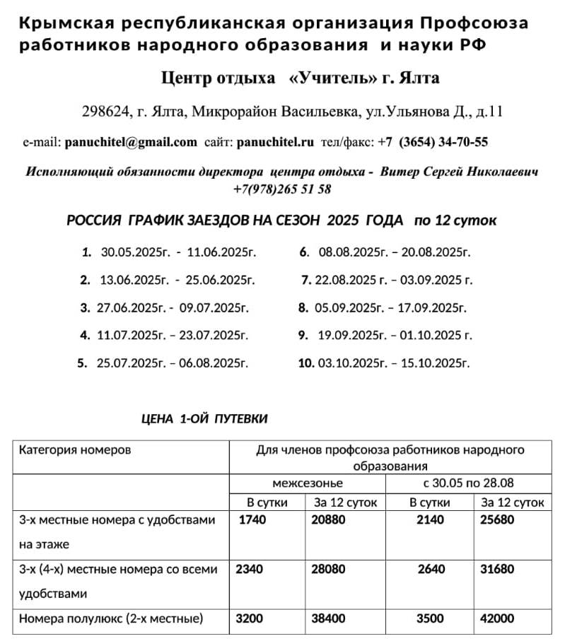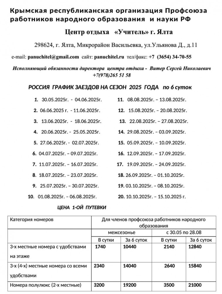 Заявки на целевой заезд принимаются до 20 октября 2025 года, на другие сроки - в течение года, в профсоюзном комитете преподавателей и сотрудников университета по адресу: