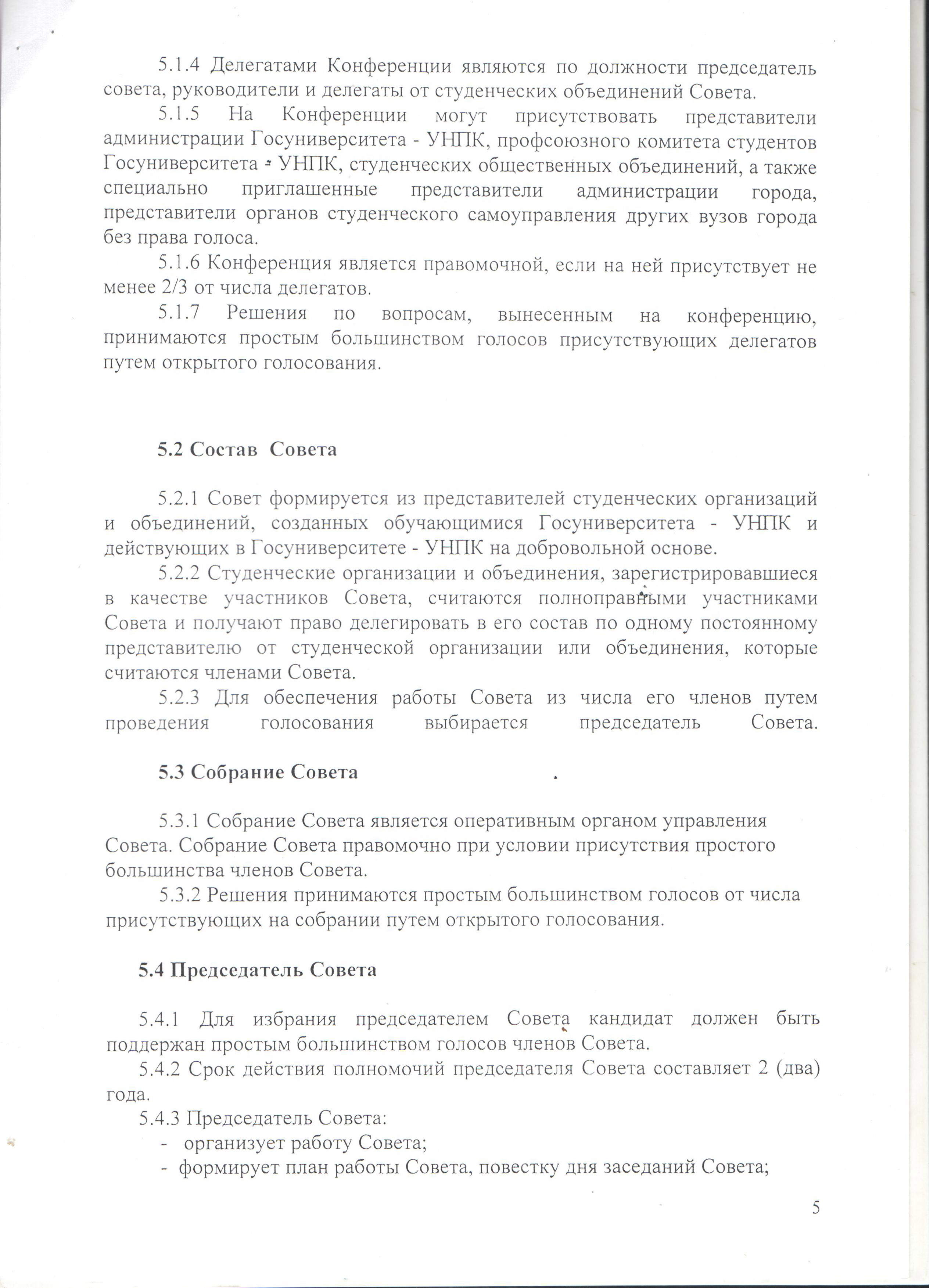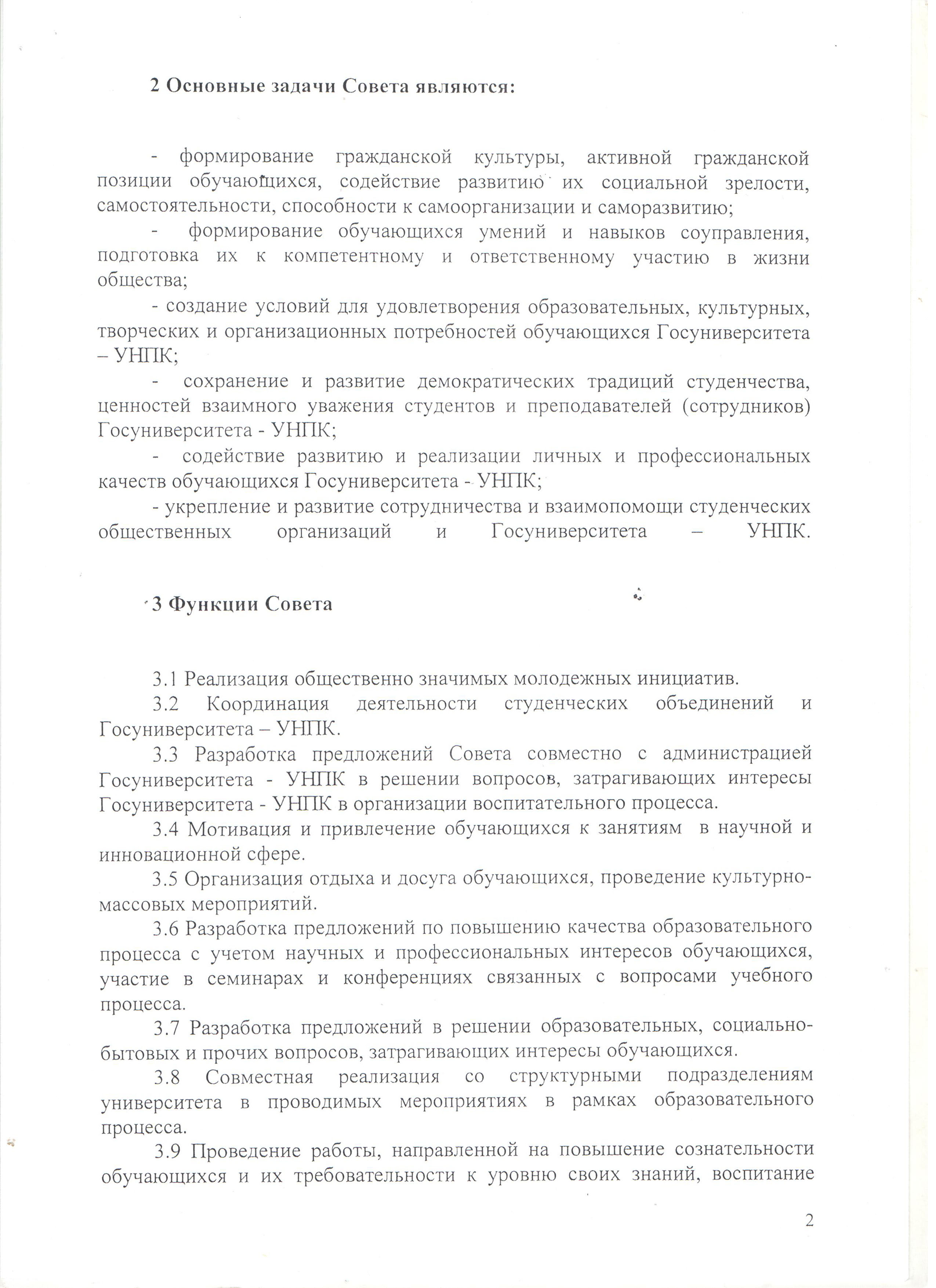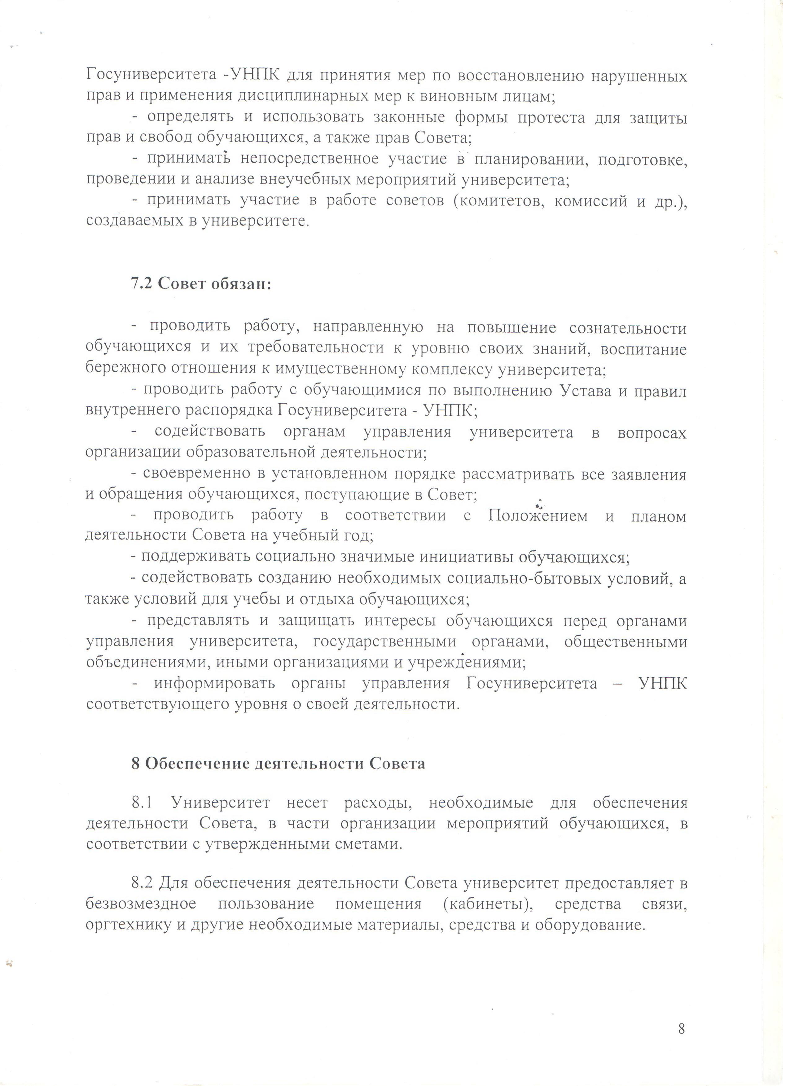 Положение о Совете студенческих объединений Госуниверситета — УНПК