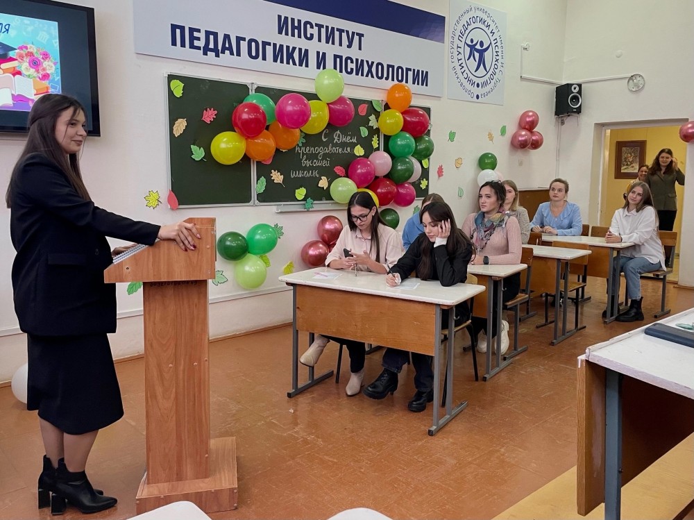 2. ИПиП - институт педагогики и психологии, поэтому день учителя - наш профессиональный праздник. В этот день мы проводим концертную программу для наших педагогов, в которой принимают участие студенты всех курсов. В завершении вручаем цветы преподавателям, ещё раз поздравляем их и благодарим за их труд.