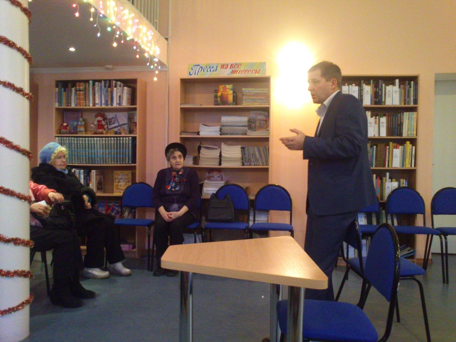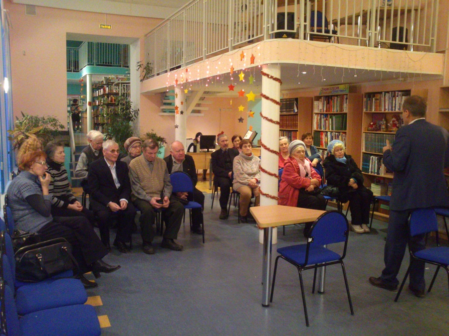 25 декабря 2014 г. состоялось заседание дискуссионного клуба ОРО «Дети войны». зам. начальника департамента здраоохранения орловской области Олег Владимирович Николаев. Вела заседание дискуссионного клуба Г.И. Петрухина.