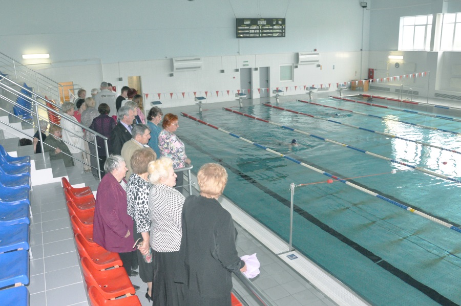 | Директор спорткомплекса "Олимпийский" В.В. Лутошкин знакомит участников семинара с бассейном и спортзалом | |