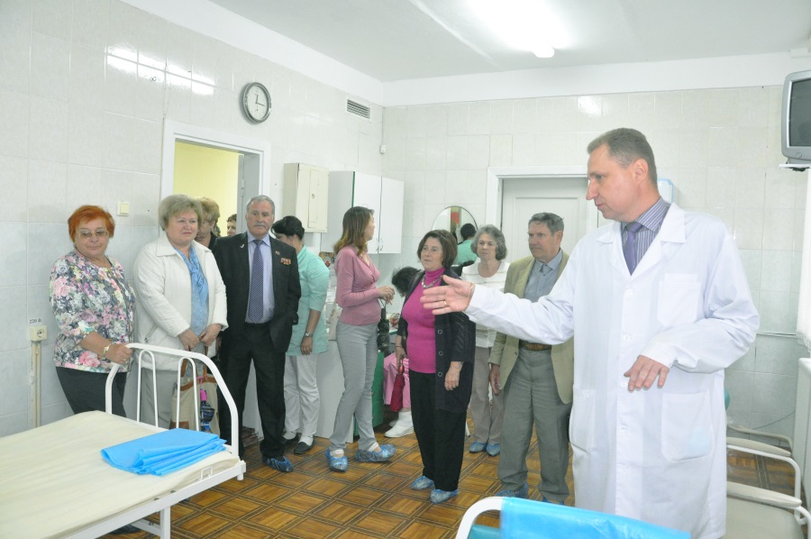 | Главврач А.А. Котов знакомит участников семинара с медицинским центром университета | |