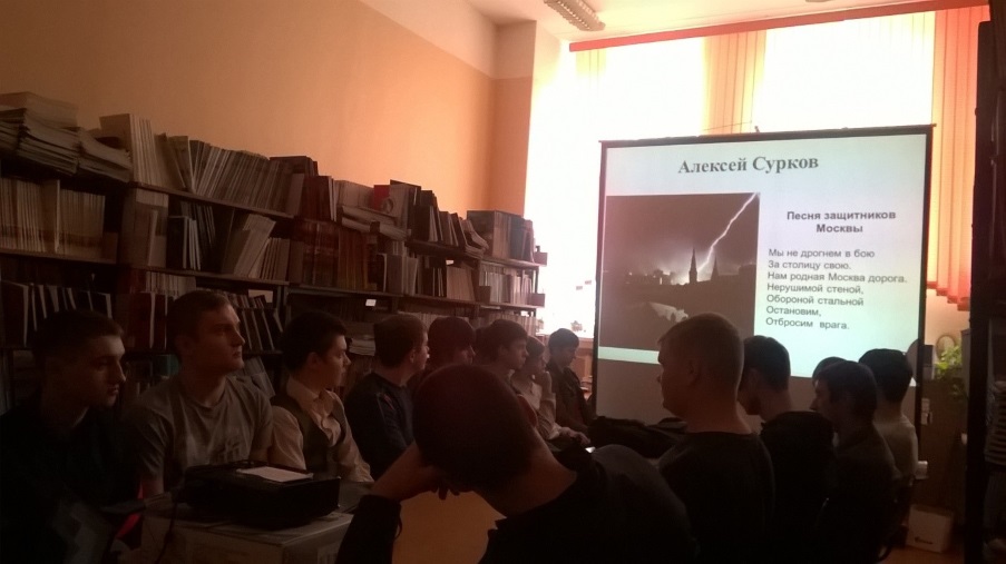 17 апреля студенты первого курса (20 чел) ФНТиАП посетили час поэзии «Праздник горький и святой», который был подготовлен сотрудниками библиотеки ГУ-УНПК.
