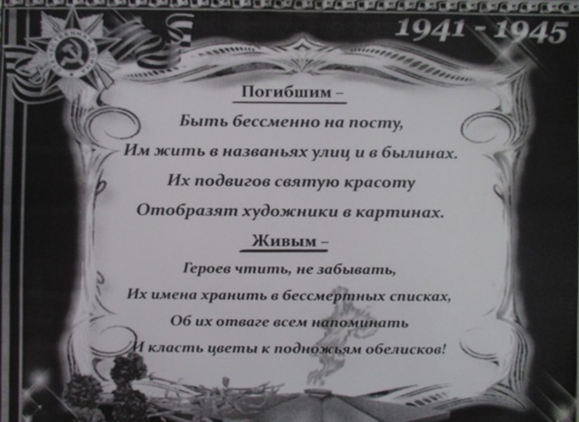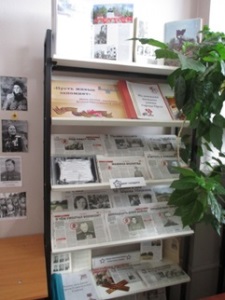 С 27 апреля по 15 мая в библиотеке корпуса Научприбор действует выставка «Пусть живые запомнят», посвященная нашим землякам-участникам Великой Отечественной войны. На выставке представлены материалы из местной и центральной периодической печати.