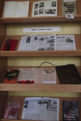 В читальном зале № 1 библиотеки Главного корпуса университета с 27.04 – 25.05 действует выставка «Сила слабых в Великой Отечественной войне», лейтмотивом которой стали Война и женская судьба. На книжной выставке представлены художественные произведения и документальные хроники, повествующие о подвиге женщин в годы ВОВ. А также статьи из центральной и региональной прессы. Наглядным материалом служат награды, письма, атрибутика военных лет.