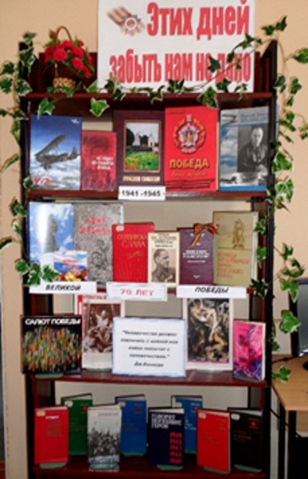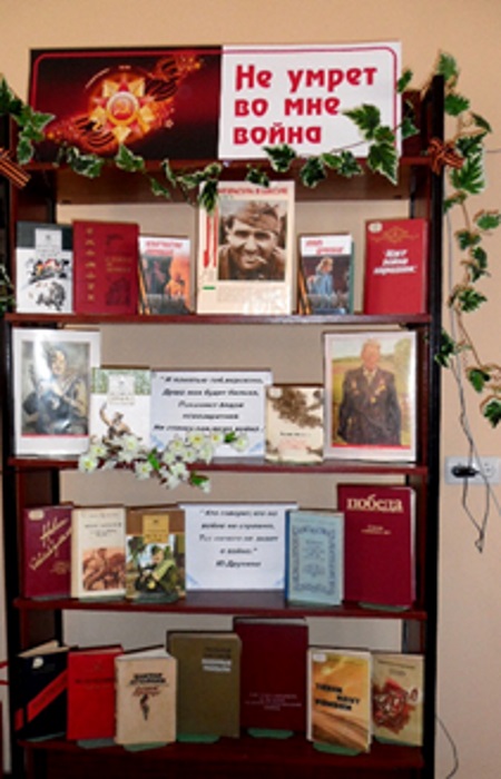 В читальном зале библиотеки Технологического института с 15.04.2015г. по 31.05.2015 проходит книжная выставка, посвященная 70-летию Победы в Великой Отечественной войне. Выставка состоит из двух разделов. «Этих дней забыть нам не дано» содержит литературу мемуарного характера, краеведческие издания и журнальные статьи. Второй раздел «Не умрет во мне война» предлагает ознакомиться с поэзией и прозой о войне.