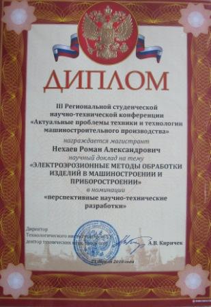 2010 год. Студенты группы Т-21 Роман Нехаев и Денис Федотов стали дипломантами региональной студенческой научно-технической конференции «Актуальные проблемы техники и технологии машиностроительного производства» (город Орёл, Технологический институт). Темы работ – Электрофизические и лазерные технологии в машиностроении.