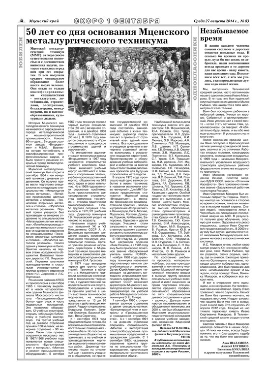 Программа проведения юбилейных мероприятий в Мценском филиале Госуниверситета-УНПКПрограмма проведения юбилейных мероприятий Госуниверситета - УНПК.Публикации в СМИ: |