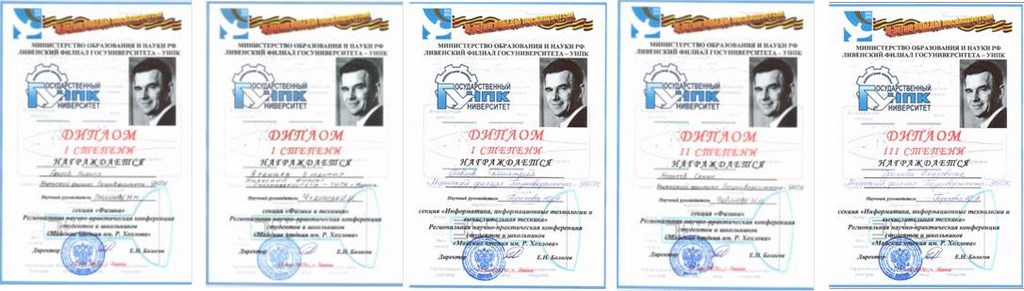13 мая 2015 года студенты Мценского филиала Госуниверситета-УНПК приняли участие в V юбилейной региональной научно-практической конференции студентов и школьников «Майские чтения им. Р.Хохлова», проводимой Ливенским филиалом Госуниверситета-УНПК. Студенты представили свои работы в направлениях: «Информатика, информационные технологии и вычислительная техника», «Физика», «Физика и техника». По итогам работы секций места распределись следующим образом: