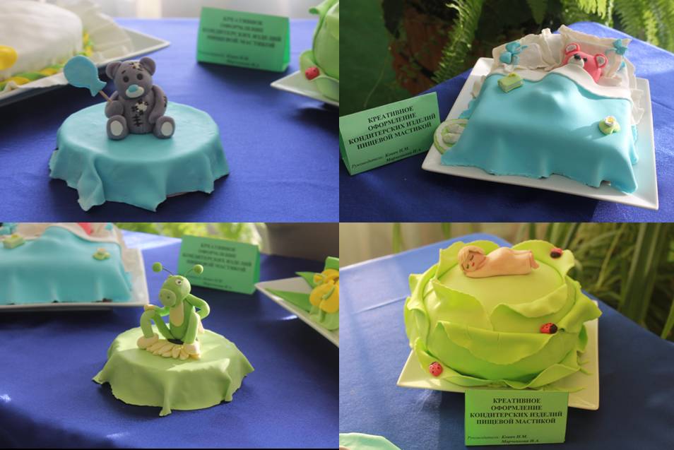 12 марта студенты группы П-4-313 специальности 19.02.03 «Технология хлеба, кондитерских и макаронных изделий» приняли участие в мастер - классе «Креативное оформление тортов мастикой». Студентки Тихонова Алина и Бесова Инесса продемонстрировали студентам 2 курса группы Тх-2-325 современные методы оформления тортов мастикой, способы лепки отдельных элементов и декоративно-художественное оформление поверхности кондитерских изделий.